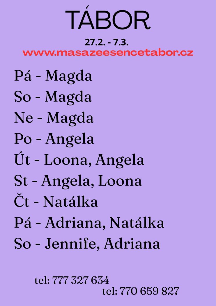 | Pátek | Na dotaz |